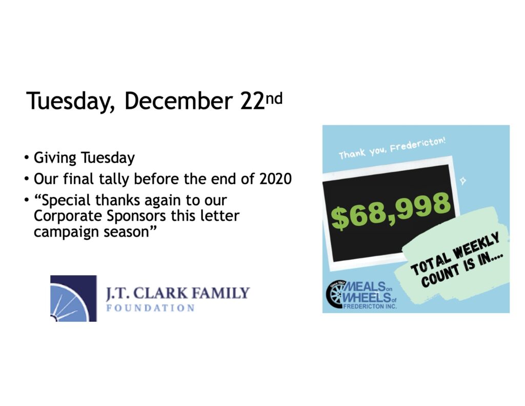 Social Media Post in December: “Let’s start this Monday off with some AMAZING News! We have been absolutely blown away by our community support this Letter Campaign. To date, our campaign has brought in almost $44,000! This has been an absolute record for us and could not have been without our amazing community donors, such as the J.T. Clark Family Foundation. They helped to encourage further donations in the beginning of the campaign, and generously donated $10,000 to our campaign total. Our organization is simply speechless when it comes to the generosity and heart of this community. We are so appreciative of your kindness this season – something to help bring holiday cheer to the end of an unpredictable year!”